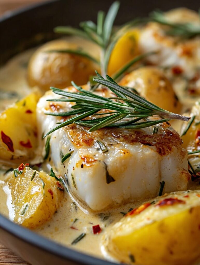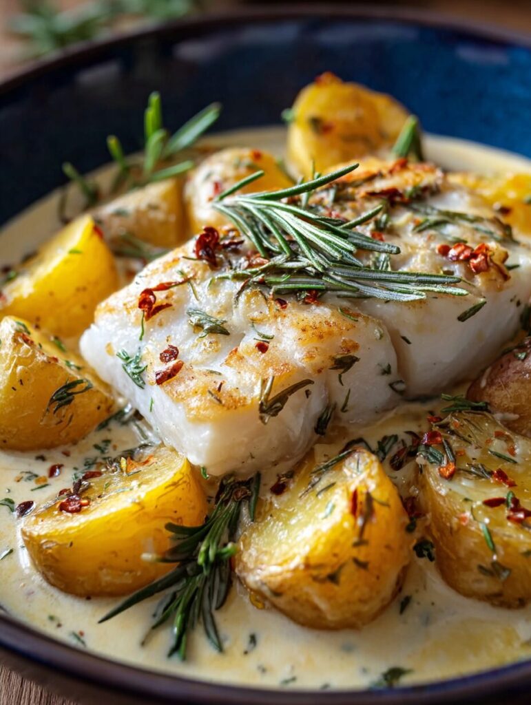 Keywords: Cod, Potatoes, Rosemary Cream Sauce, Creamy Rosemary Cod with Potatoes