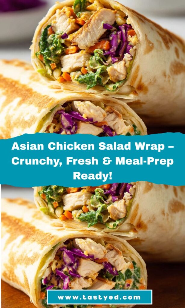 A delicious and healthy Asian Chicken Salad Wrap that combines fresh vegetables and tender chicken in a flavorful dressing.