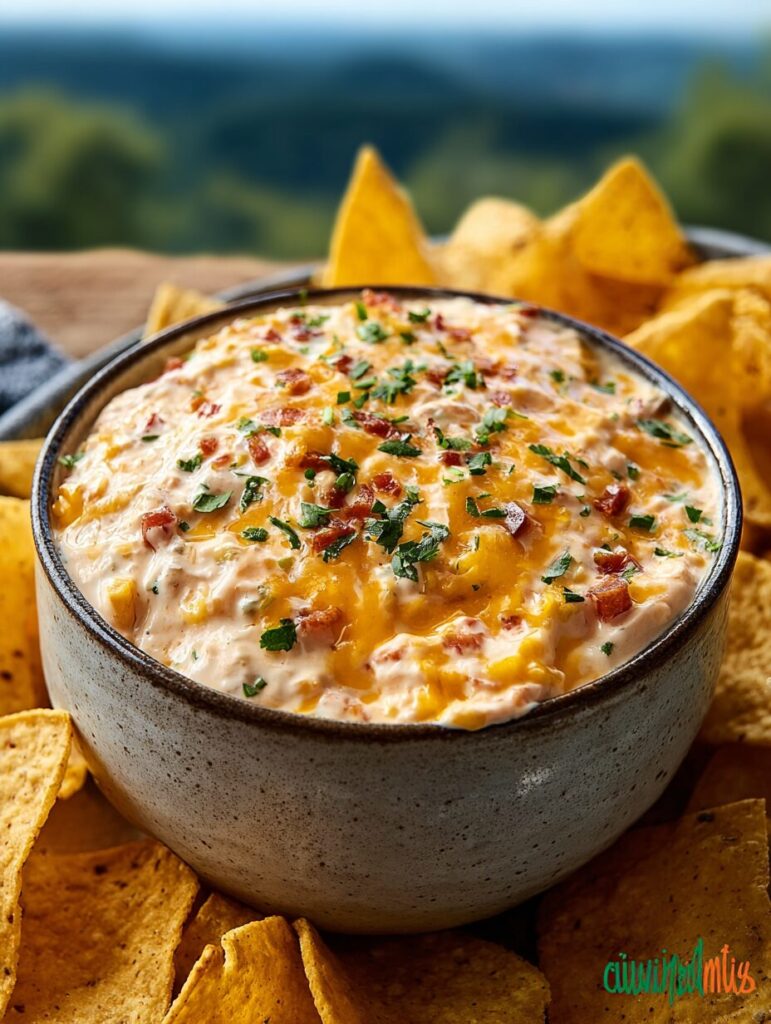 - Step 6: Serve with tortilla chips or fresh vegetables. I love to arrange the chips around the dip in a colorful bowl—it makes for a beautiful presentation!