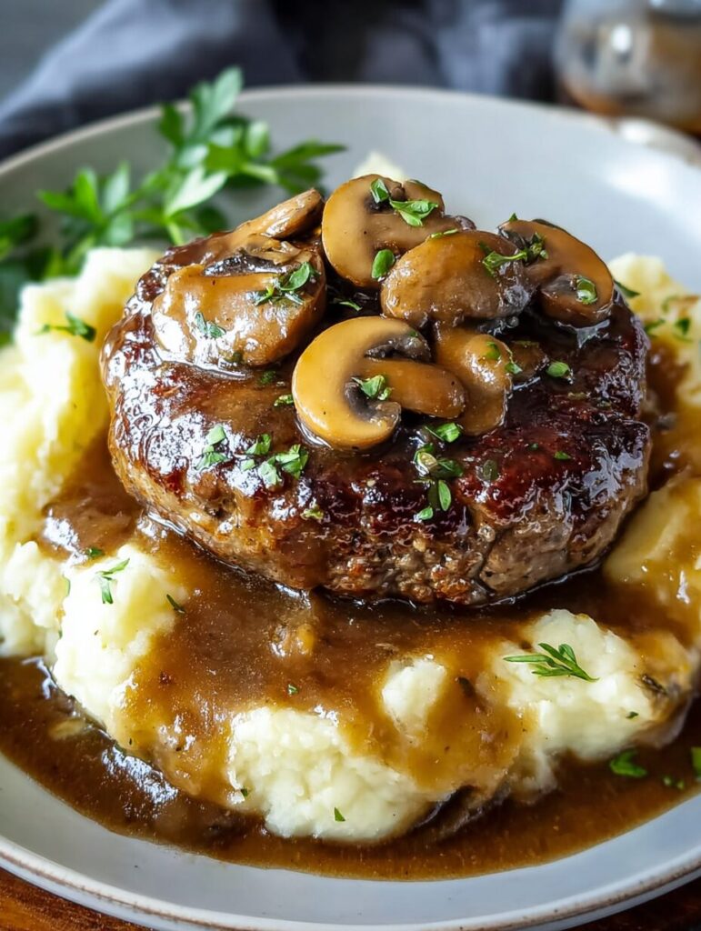 - Step 6: Before serving, garnish with freshly chopped parsley for a pop of color and freshness. Serve hot and enjoy the comforting flavors of your homemade Bobby Flay Salisbury Steak with Mushroom Gravy!