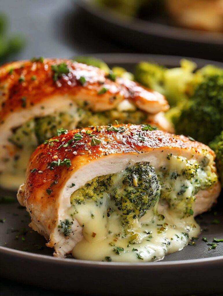 A delightful and healthy dinner option featuring chicken breasts stuffed with a flavorful broccoli and cheese filling.