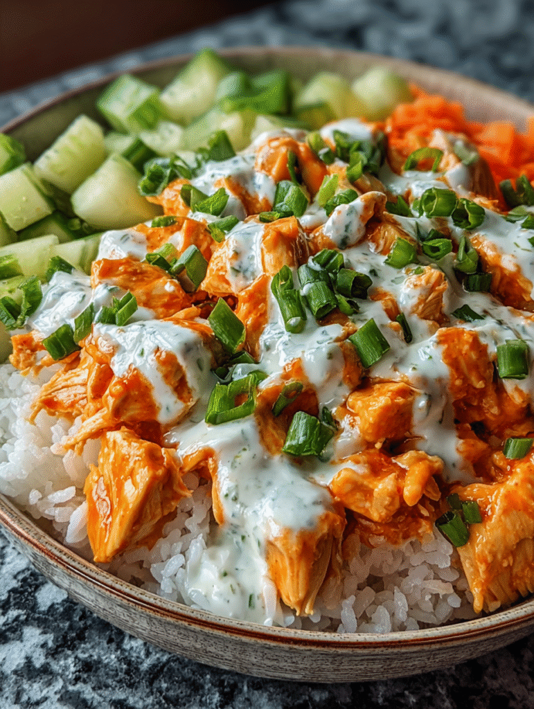 Buffalo Chicken Bowls are a flavorful and spicy dish that combines tender chicken with rice and a variety of toppings, perfect for a satisfying meal.