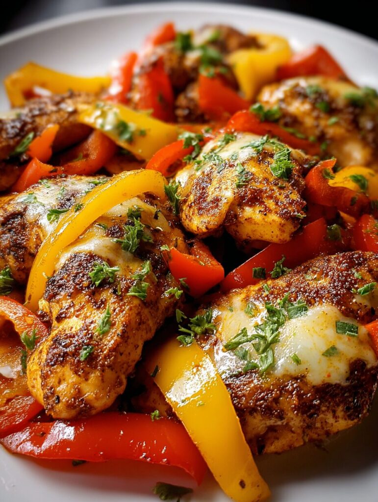 Cajun Chicken with Bell Peppers is a flavorful dish that combines seasoned chicken breasts with sautéed bell peppers and onions, creating a delicious and colorful meal.
