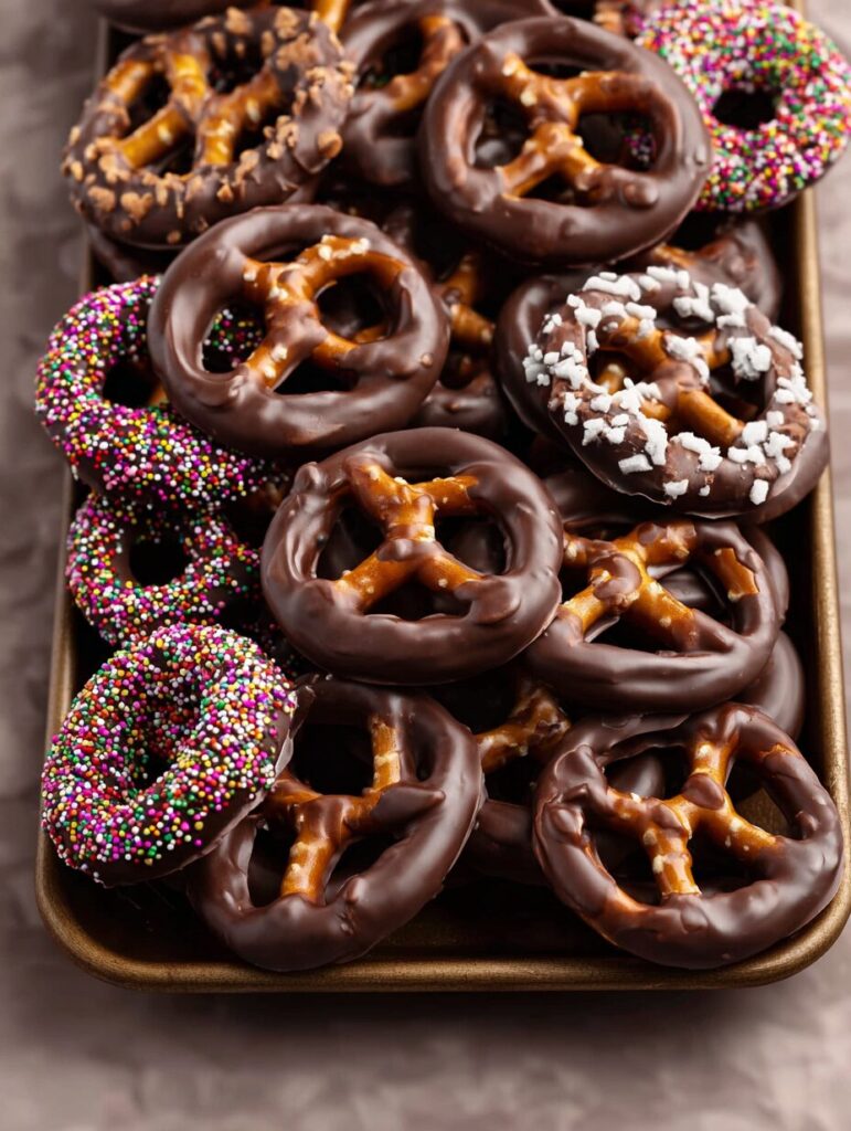 Once you’ve mastered the classic chocolate-covered pretzels, why not get a little adventurous? Here are some fun variations to elevate your chocolate-dipped pretzels:
