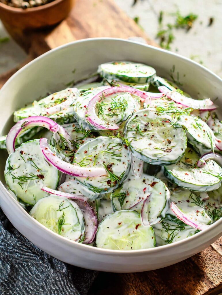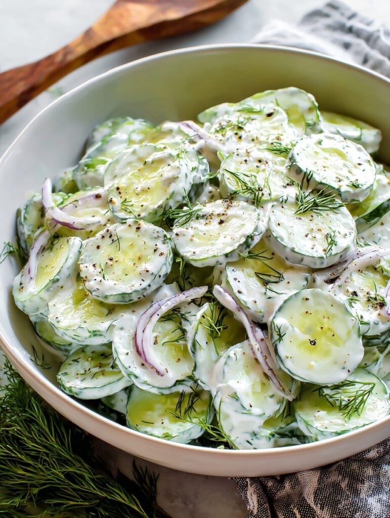 A refreshing and creamy cucumber salad perfect for summer gatherings.