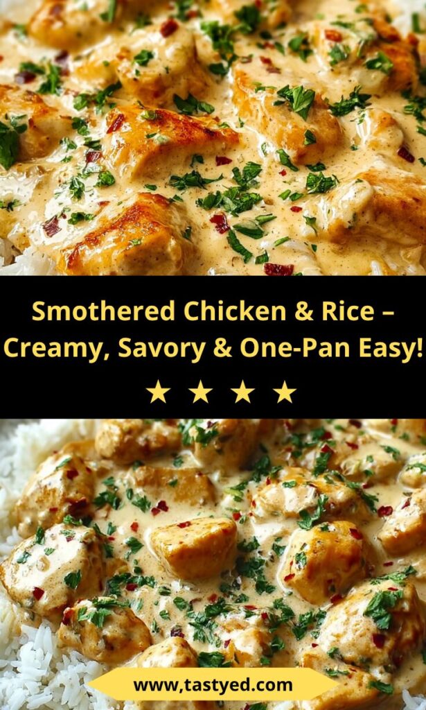 This recipe for creamy smothered chicken and rice is a lifesaver for busy days. It’s quick to prepare, taking just 45 minutes from start to finish. The flavors are rich and comforting, making it a family favorite. Plus, it’s versatile! You can easily adapt it to suit your taste or dietary needs. Trust me, once you try it, you’ll want to make it again and again!