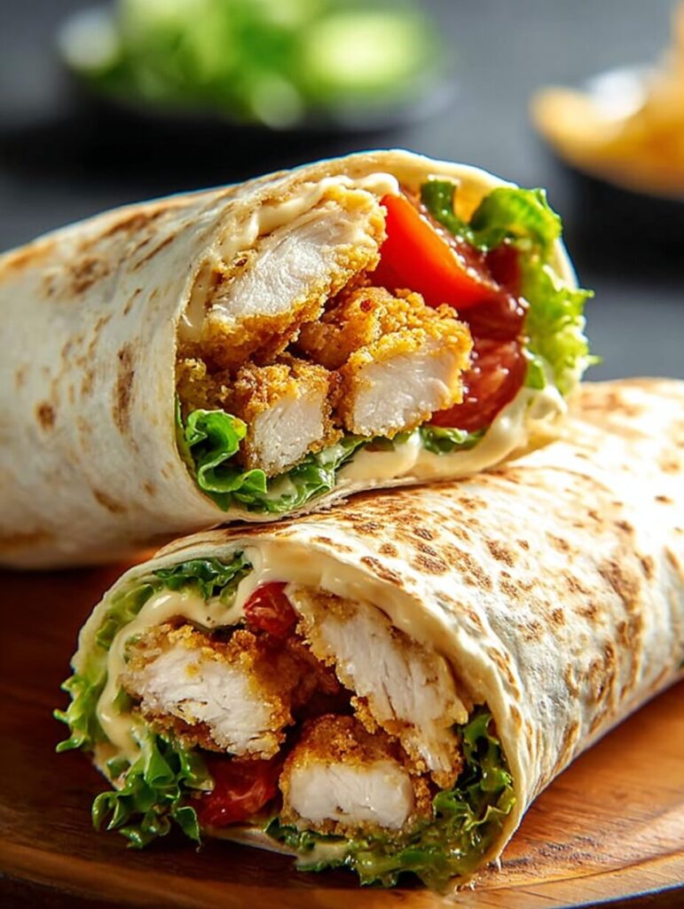 A delicious and easy-to-make crispy chicken ranch snack wrap that combines tender chicken, creamy ranch dressing, and fresh vegetables wrapped in a soft tortilla.