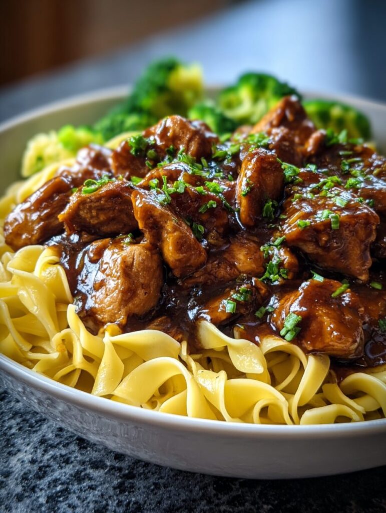 - Step 9: Serve the tender chicken over the noodles, and don’t forget to garnish with fresh green onions for that extra pop of color and flavor!