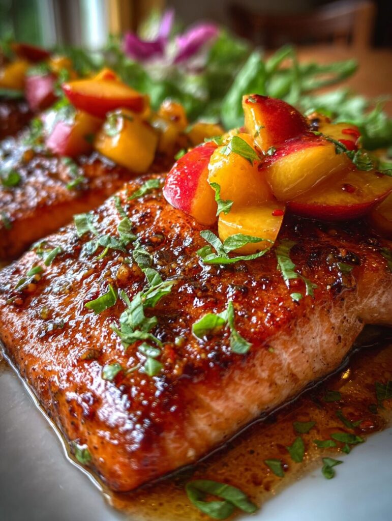 - Peach Salsa Topping: Top the grilled salmon with a fresh peach salsa for added texture and flavor.