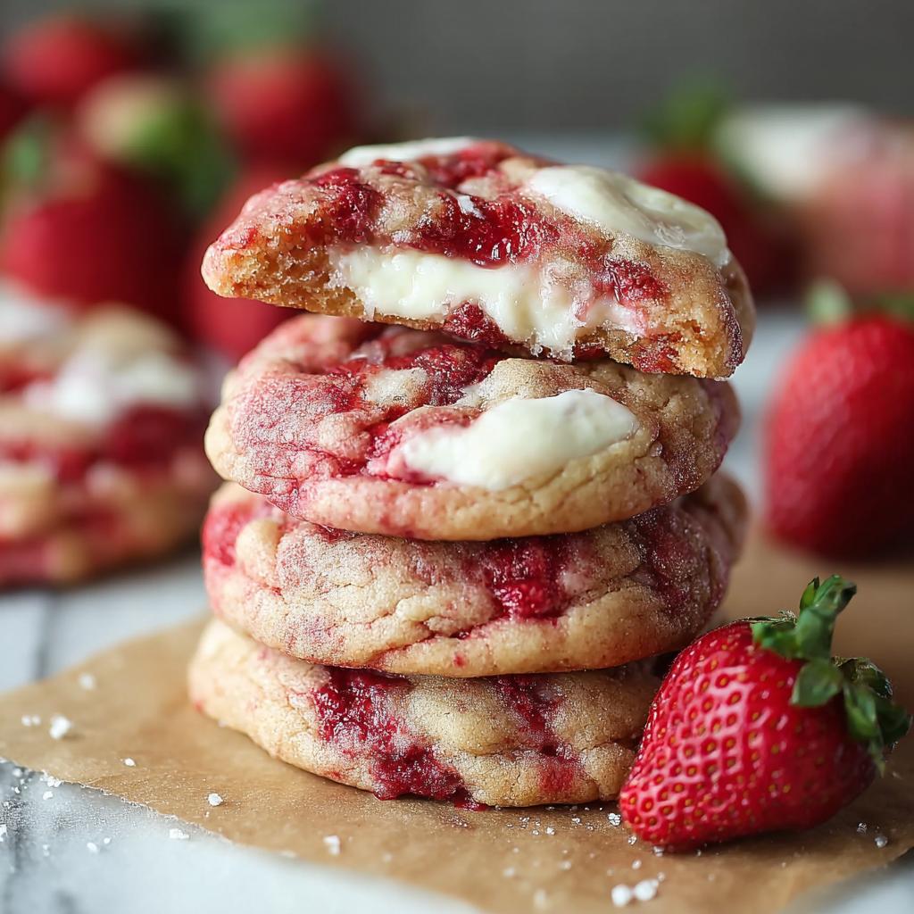 Whether you're enjoying a sunny afternoon or hosting a gathering, these cookies bring joy with every bite. They are soft, chewy, and adorned with delectable bits of strawberries and a hint of cheesecake flavor.