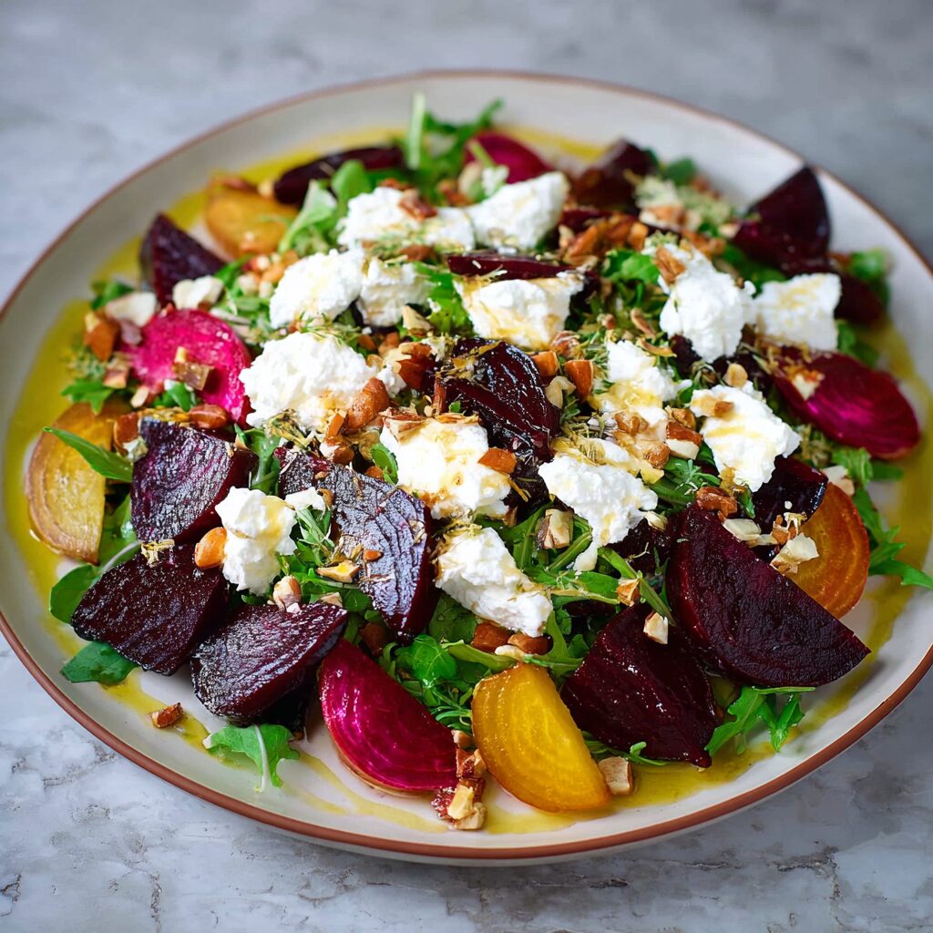 Beet salad with goat cheese is a refreshing dish that beautifully balances earthy and creamy flavors. The vibrant colors of the beets alongside the tangy goat cheese make for a visually appealing presentation that's perfect for any gathering.
