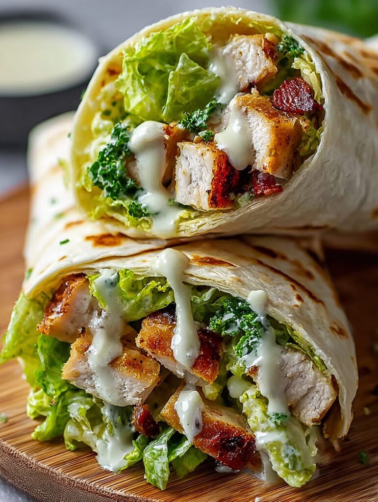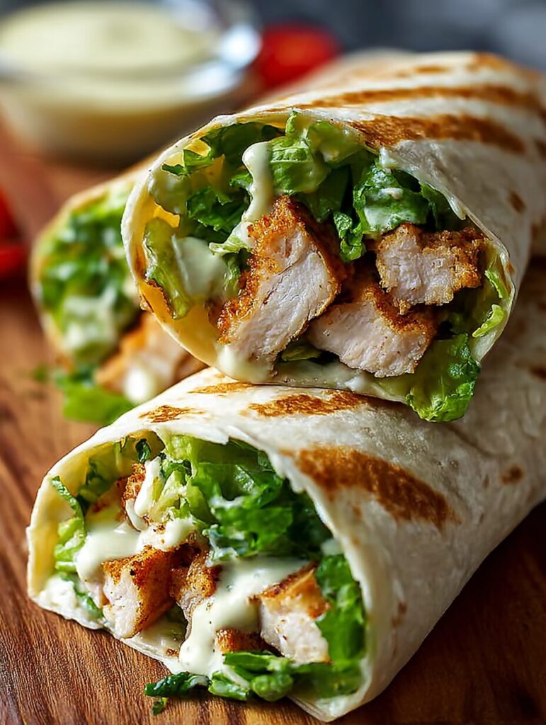 These wraps are perfect for a quick lunch on the go! Pair them with a side of fresh fruit or a light salad for a complete meal. You can also serve them with a small bowl of extra Caesar dressing for dipping—yum!