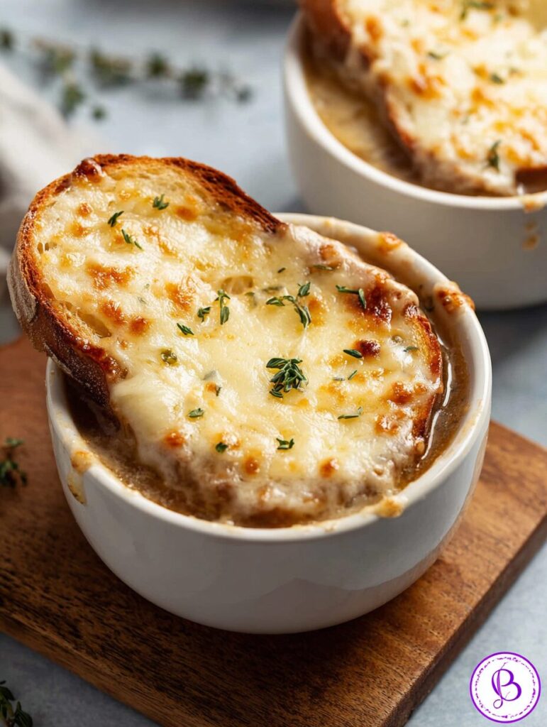 A classic French Onion Soup recipe that reveals the secret to achieving perfect caramelized onions and a rich, flavorful broth topped with melted cheese.