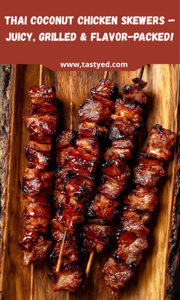 Making Grilled Thai Coconut Chicken Skewers is more than just cooking; it’s about creating joyful moments with family and friends. The vibrant flavors and enticing aroma fill your kitchen, making it a warm gathering place. Each bite transports you to a sunny Thai beach, where the worries of the day melt away. Whether it’s a summer barbecue or a cozy weeknight dinner, these skewers are sure to impress. I hope you enjoy making them as much as I do. So fire up that grill, gather your loved ones, and savor the deliciousness together!