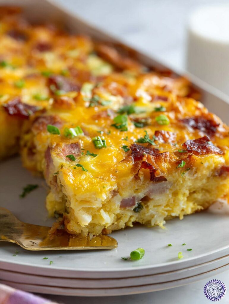 A hearty and delicious breakfast casserole featuring crispy hash browns, eggs, and cheese, perfect for a morning boost.