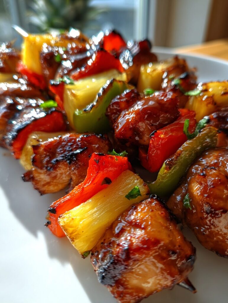 Keywords: Hawaiian Pineapple Chicken Kabobs, Tropical chicken pineapple skewers, Hawaiian-style chicken kabobs, Grilled pineapple chicken skewers, Sweet and savory chicken kabobs, Pineapple glazed chicken on skewers, Island chicken and pineapple kabobs, BBQ chicken and pineapple sticks, Teriyaki pineapple chicken kabobs, Luau-style chicken kabobs, Pineapple chicken grill sticks