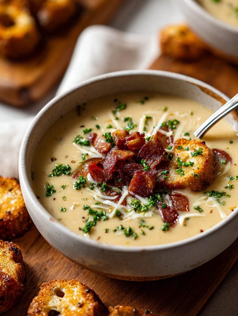- Loaded Baked Potato Style: Stir in diced cooked potatoes and top with crispy bacon bits, green onions, and a dollop of sour cream for a heartier, loaded version of this comforting soup.