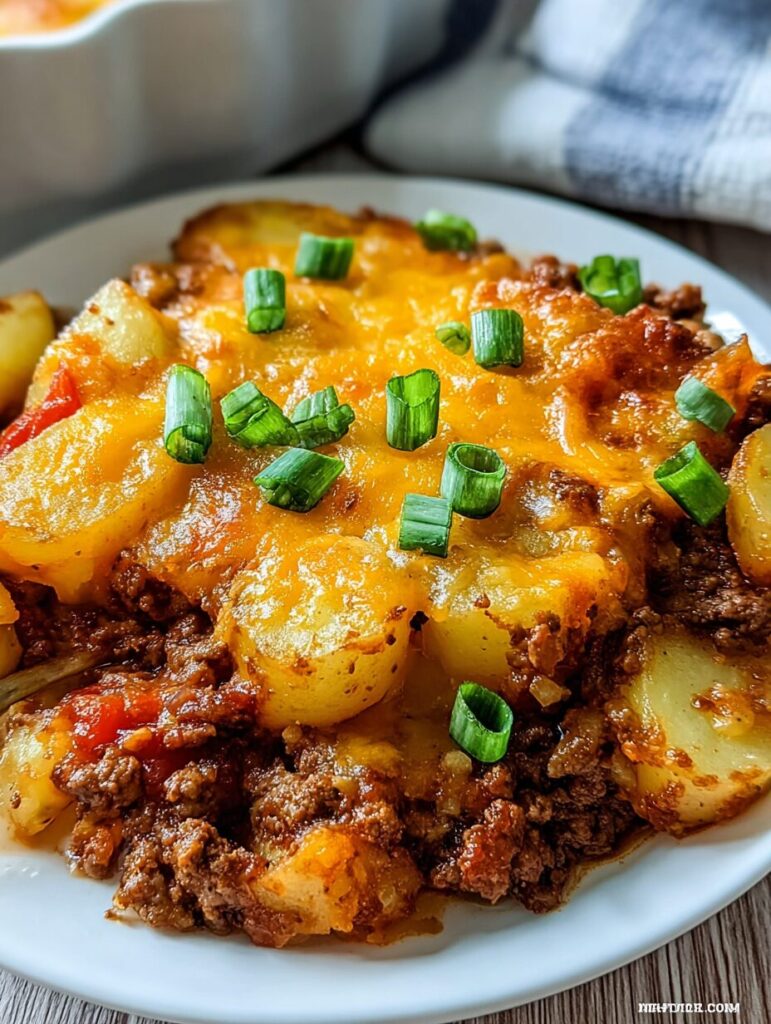 To avoid common pitfalls, ensure the ground beef is fully cooked before layering, and don’t skip the foil cover during the first hour of baking. This keeps everything moist and helps the potatoes cook evenly!