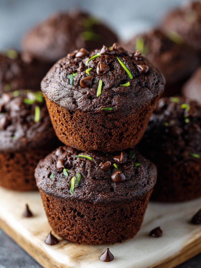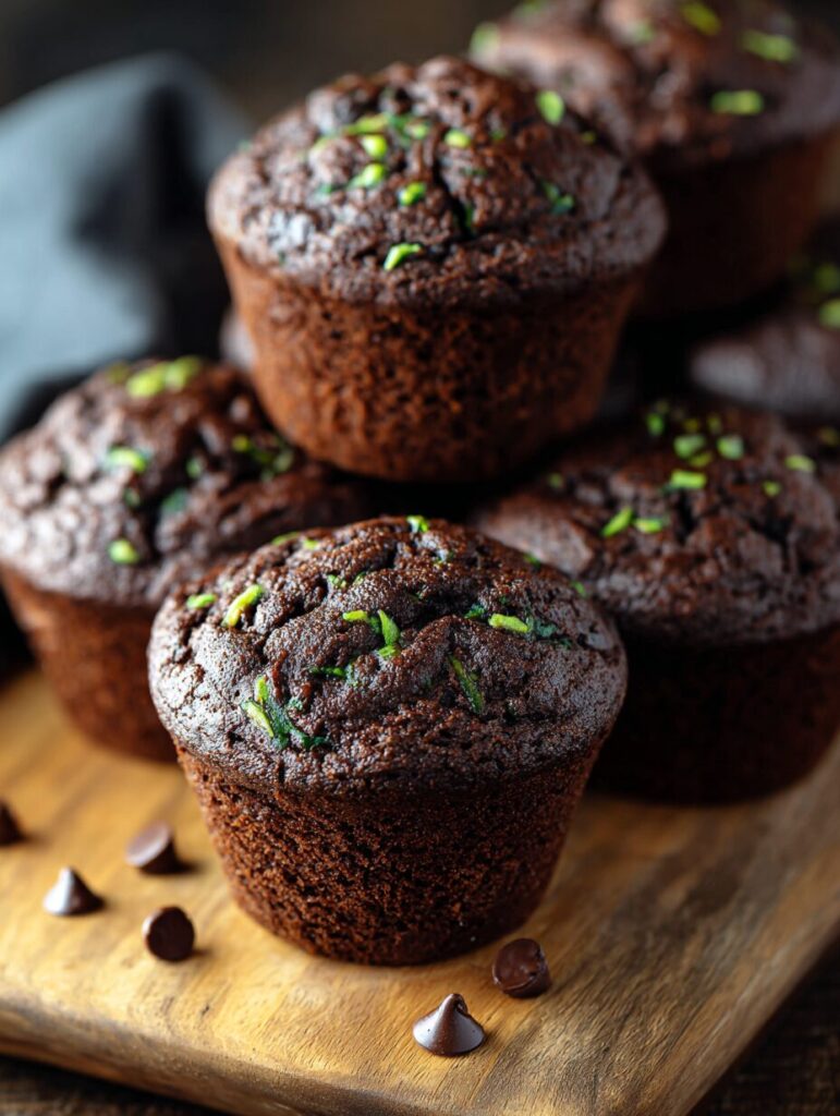 Deliciously moist and rich double chocolate muffins made with zucchini, perfect for chocolate lovers.