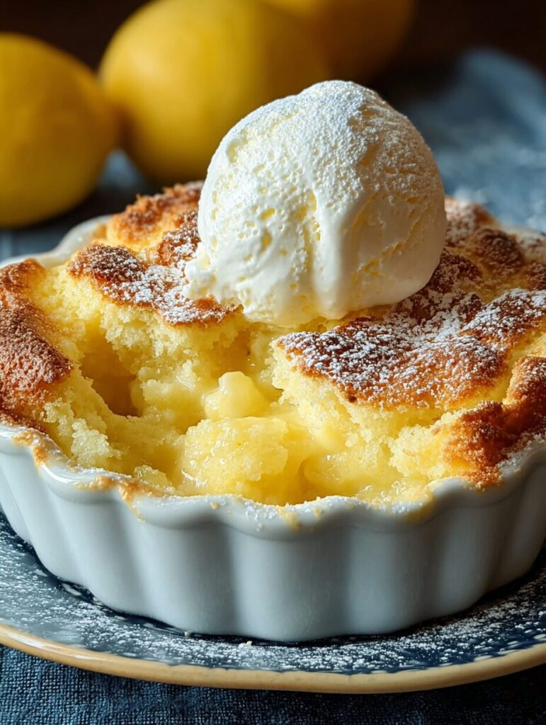 - Serve warm and enjoy your Magic Lemon Cobbler!