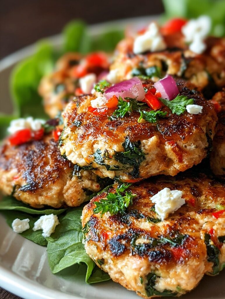 Mediterranean Chicken Patties—juicy, herbed chicken with garlic, lemon, and feta. Perfect for wraps, bowls, or a healthy, flavor-packed dinner!