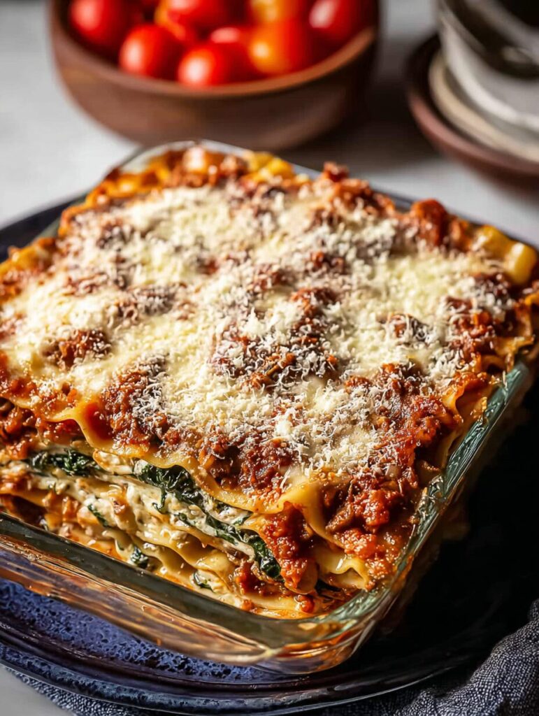 Serve this delicious lasagna with a side salad and some crusty garlic bread for a complete meal. It’s also fantastic with a sprinkle of red pepper flakes for a little kick!