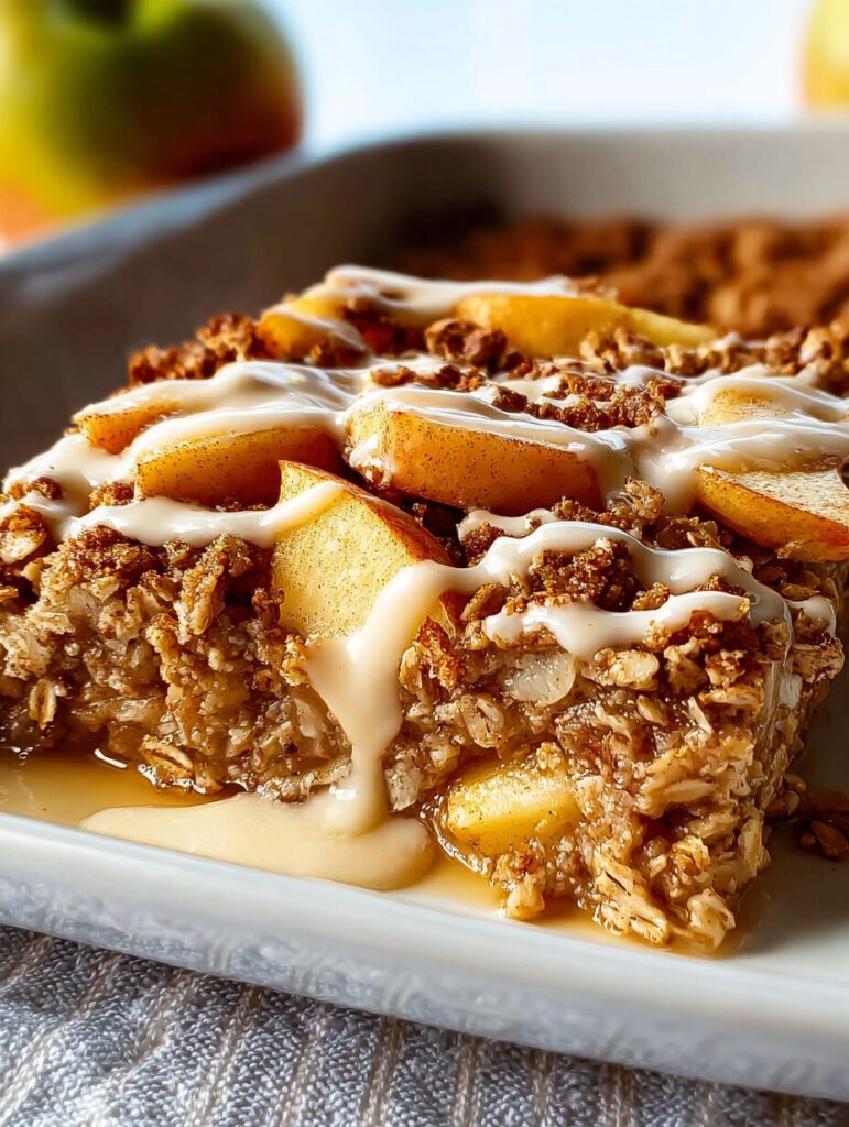 A delicious and healthy baked oatmeal dish featuring apples, perfect for breakfast.