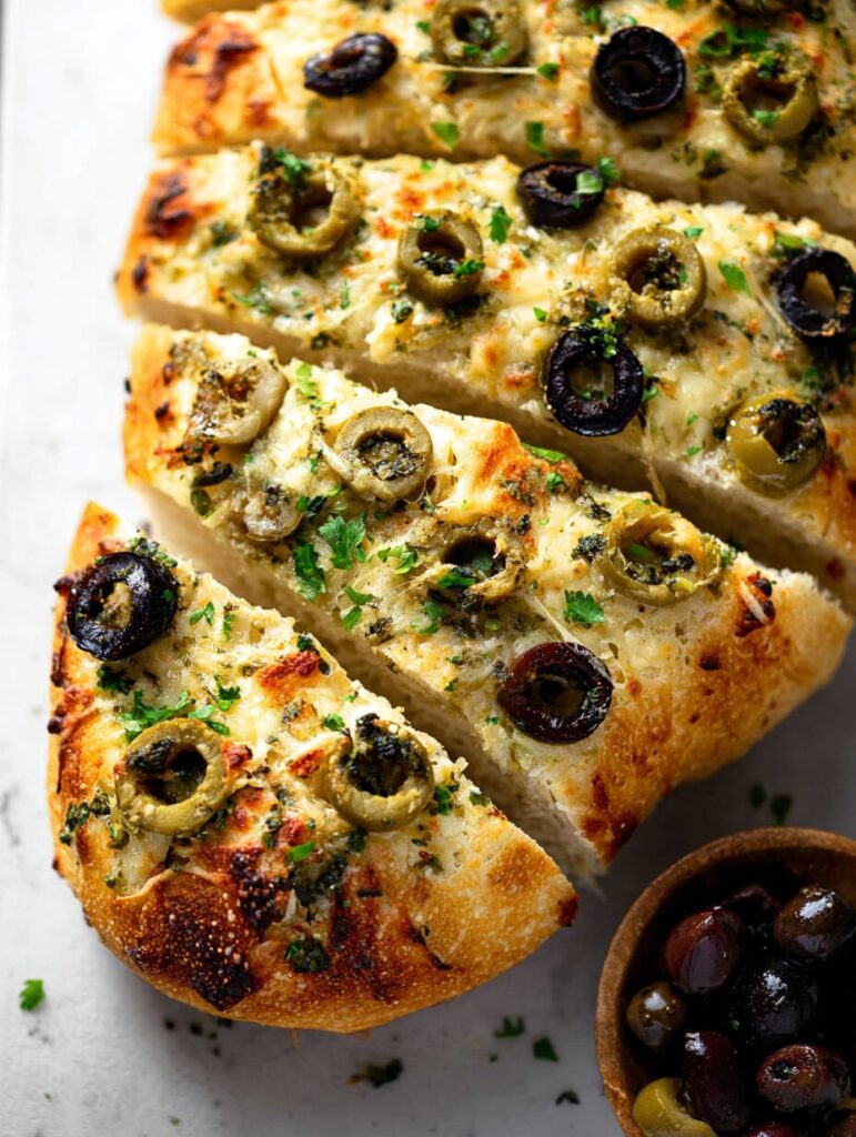 - Step 9: Slice, garnish with fresh parsley, and enjoy your delicious olive cheese bread!