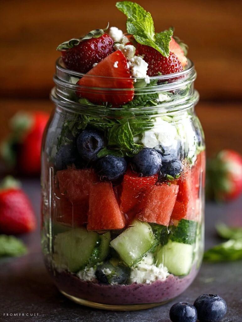 What’s the secret to perfect Patriotic Mason Jar Fruit and Feta Salad?