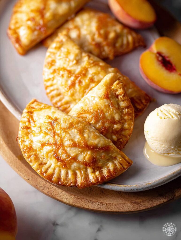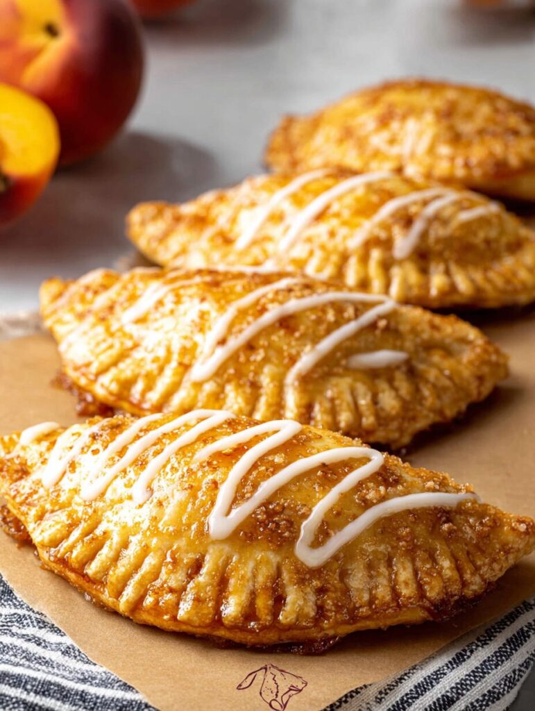 Peach Hand Pies—flaky, golden pastry filled with sweet, juicy peaches. A portable, irresistible summer dessert perfect for picnics or snacking!