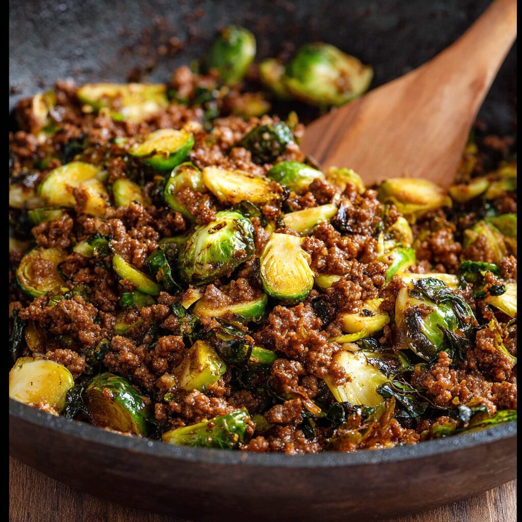 Savory Ground Beef and Brussels Sprouts Medley