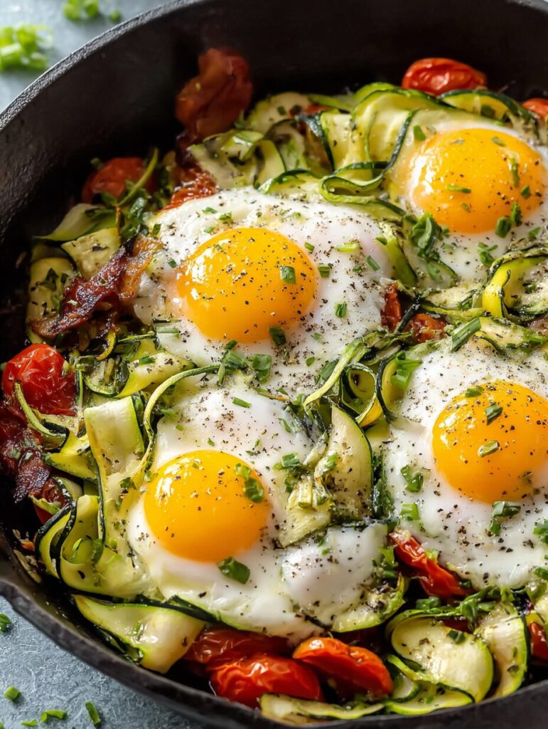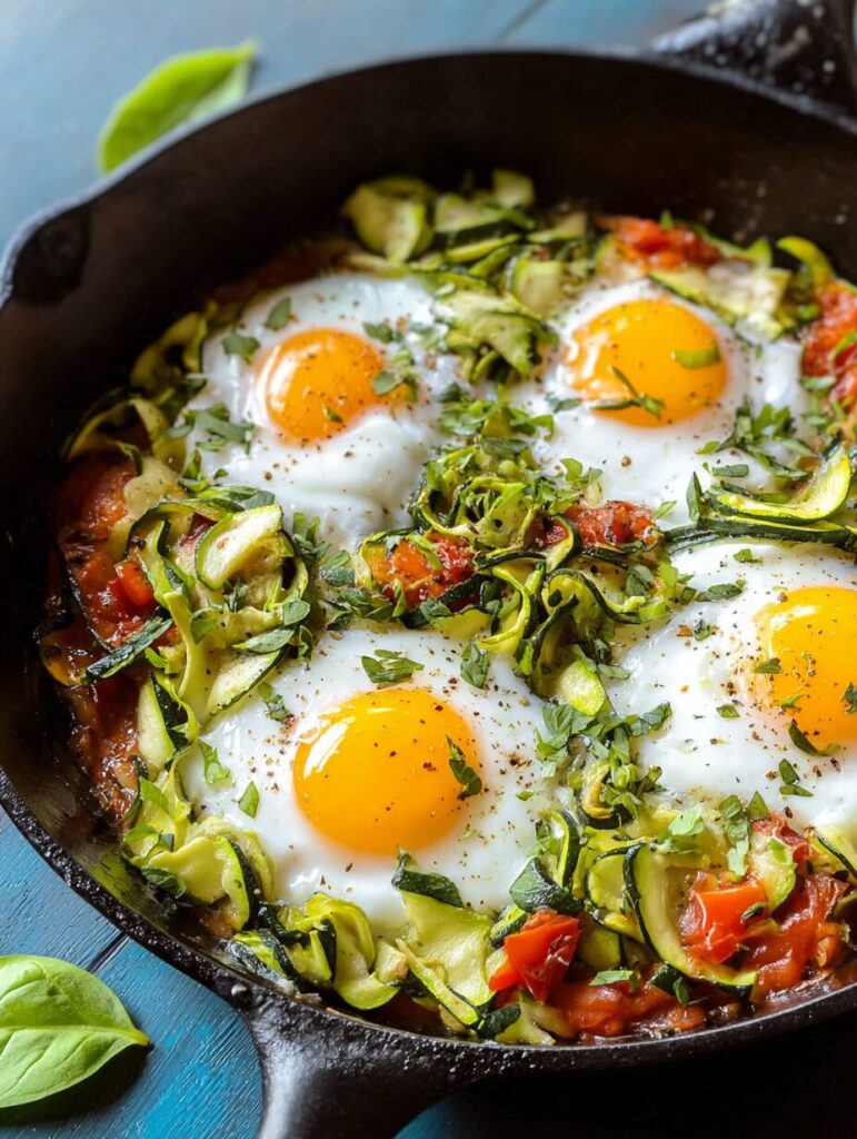 The key is to balance the cooking time of the vegetables and the eggs. Start with the veggies to develop their flavors, and then add the eggs at the right moment to ensure they’re perfectly cooked without losing the freshness of the zucchini.