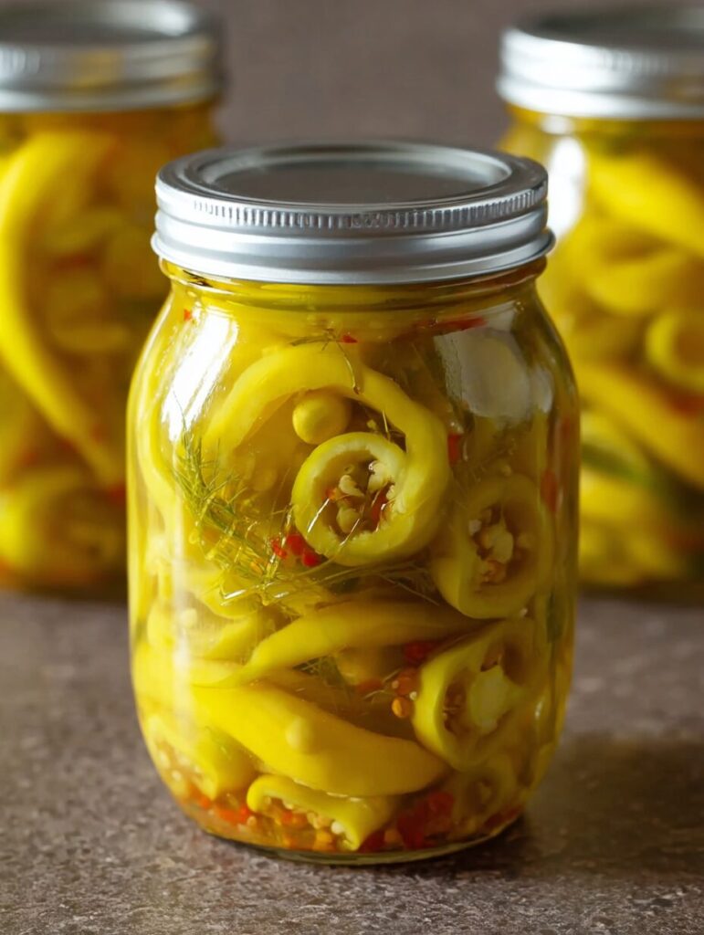 Pickled Banana Peppers—tangy, crisp, and mildly spicy. A zesty homemade condiment perfect for sandwiches, salads, pizzas, and snacking!