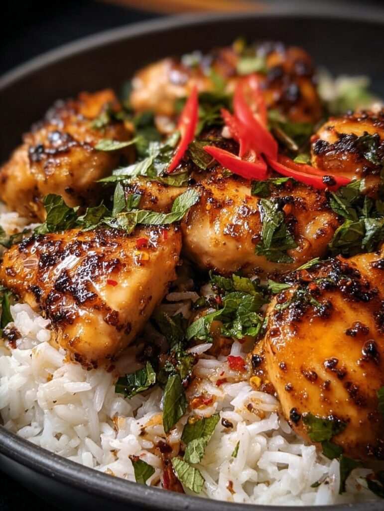 - Step 6: Once the chicken is done, fluff the coconut rice with a fork to separate the grains. Serve the spicy maple chicken alongside the creamy coconut rice, and don’t forget to squeeze fresh lime juice over the top for that extra zing!