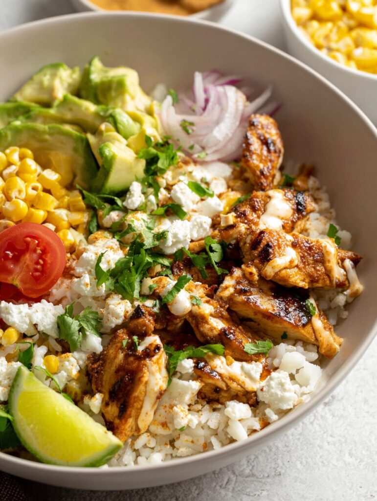 “Discover Delicious Street Corn Chicken Rice Bowls!”