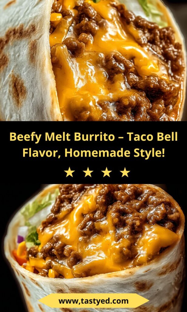 Creating the Taco Bell Beefy Melt Burrito at home is more than just cooking; it’s about bringing joy to your table. The aroma of seasoned beef and melted cheese fills the kitchen, making it feel like a warm hug. This recipe is perfect for busy nights when you want something quick yet satisfying. Plus, it’s a fantastic way to involve the kids in the kitchen! Watching them roll up their own burritos is a memory in the making. So, gather your ingredients, unleash your creativity, and enjoy every delicious bite of this comforting meal!