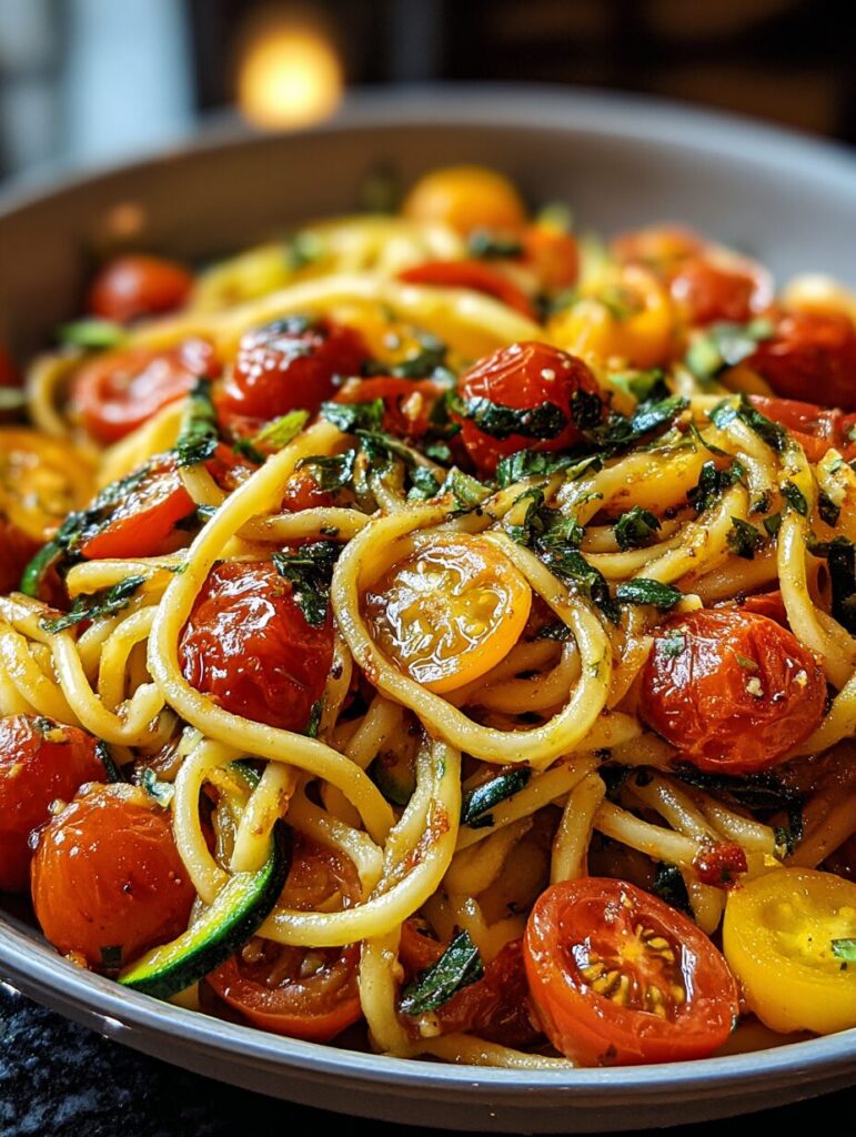 Tomato Zucchini Pasta—light, fresh, and flavorful! This easy dish combines juicy tomatoes, tender zucchini, and herbs for a perfect summer meal.